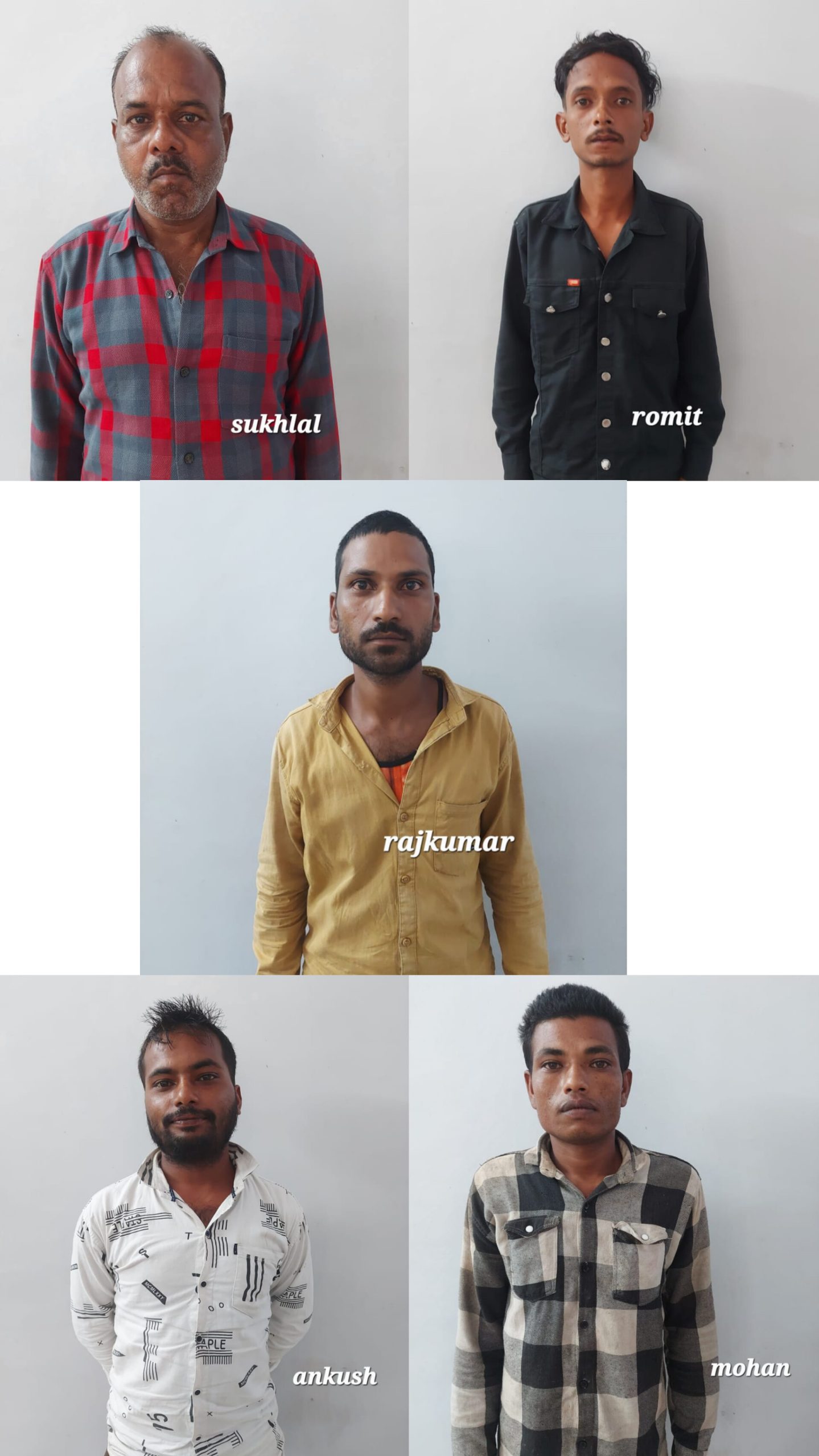 पकड़े गए जुआरियों में राधेश्याम महंत पिता बीतन दास महंत उम्र 35 वर्ष साकिन सिविल लाईन वार्ड नंबर 18 मनेन्द्रगढ, शंकर रजक पिता प्यारेलाल उम्र 32 वर्ष साकिन वार्ड नंबर 14 नयी सब्जी मंडी मनेन्द्रगढ जिला MCB, जितेन्द्र उर्फ कुंजीलाल जायसवाल पिता स्व रामदुलार उम्र 48 वर्ष साकिन भट्ठाटोला थाना गौरेला, विनोद जायसवाल पिता रामलाल उम्र 48 वर्ष साकिन वार्ड नंबर 3 कुदरा थाना सोहागपुर जिला शहडोल मध्यप्रदेश, सुभाष जायसवाल पिता मोहनलाल उम्र 28 वर्ष थाना सोहागपुर जिला शहडोल मध्यप्रदेश, सदा कश्यप पिता गजानंद कश्यप उम्र 43 वर्ष साकिन पतगवां थाना पेण्ड्रा जिला GPM, मोहन लाल कश्यप पिता मुलचंद उम्र 38 वर्ष साकिन पतगवां थाना पेण्ड्रा जिला GPM, रोहित जैन पिता स्व महेश जैन उम्र 23 वर्ष साकिन वार्ड नंबर 6 कोतमा जिला अनुपपुर, जय प्रकाश पांडेय पिता रमाकांत पांडेय उम्र 30 वर्ष साकिन वार्ड नंबर 01 बुढार मध्यप्रदेश, सुनील पांडेय पिता छोटेलाल उम्र 37 वर्ष साकिन बदरा थाना कोतमा जिला अनुपपुर मध्यप्रदेश भागते हुए पकड़े गए। आरोपियों से 2 लाख 23 हजार रुपए नगद, दो गाड़ी एक सफेद रंग की स्कार्पियों क्रमांक MP18 – C-7595 एवं एक स्लेटी रंग की स्को वेन क्रमांक CG 10 BD 4508 कीमती 18,00,000 लाख मिला। जिसे आरोपियों से जप्त कर आरोपियों के विरुद्ध जुआ एक्ट के तहत कार्यवाही की गई है। अन्य फरार आरोपियों का तलाश किया जा रहा है।