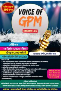 वॉयस ऑफ जीपीएम सीजन – 2 का ऑडिशन 14 दिसंबर रविवार को डाइट पेण्ड्रा में…,बड़ी संख्या में कर्मचारियों ने लिया है कार्यक्रम में भाग…,13 दिसंबर तक पंजीयन कराकर ले सकते हैं भाग…,कर्मचारी प्रतिभा मंच जिला जीपीएम का आयोजन…
